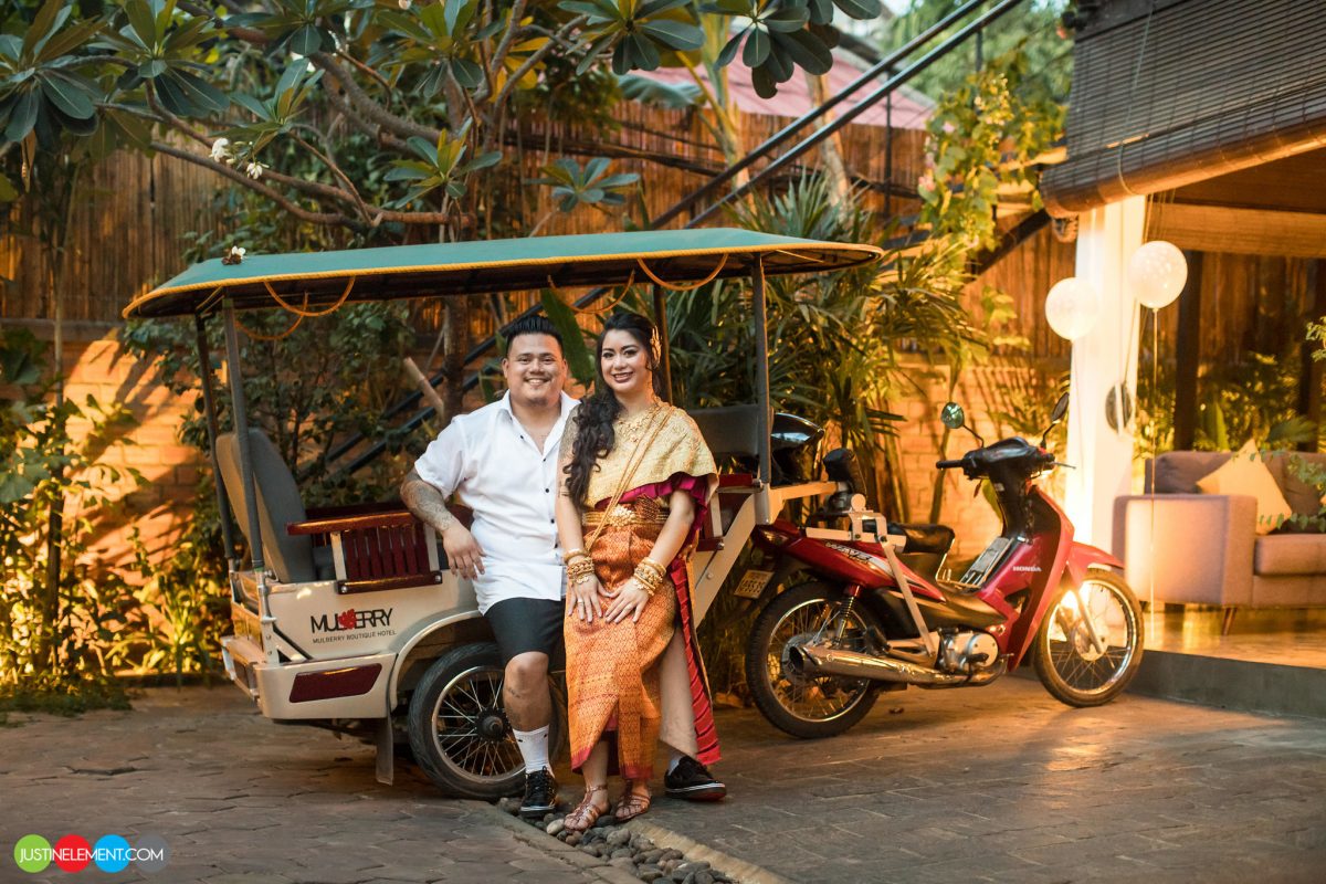 As Borany is originally half American and half Khmer, she wished for a wedding celebration in her origins country. The couple invited their friends and all their family to come over in Siem Reap for one week of happiness, discovering, and celebration. They all spent their days at Mulberry Boutique Hotel, discovering what makes Cambodia and the Khmer culture so rich,