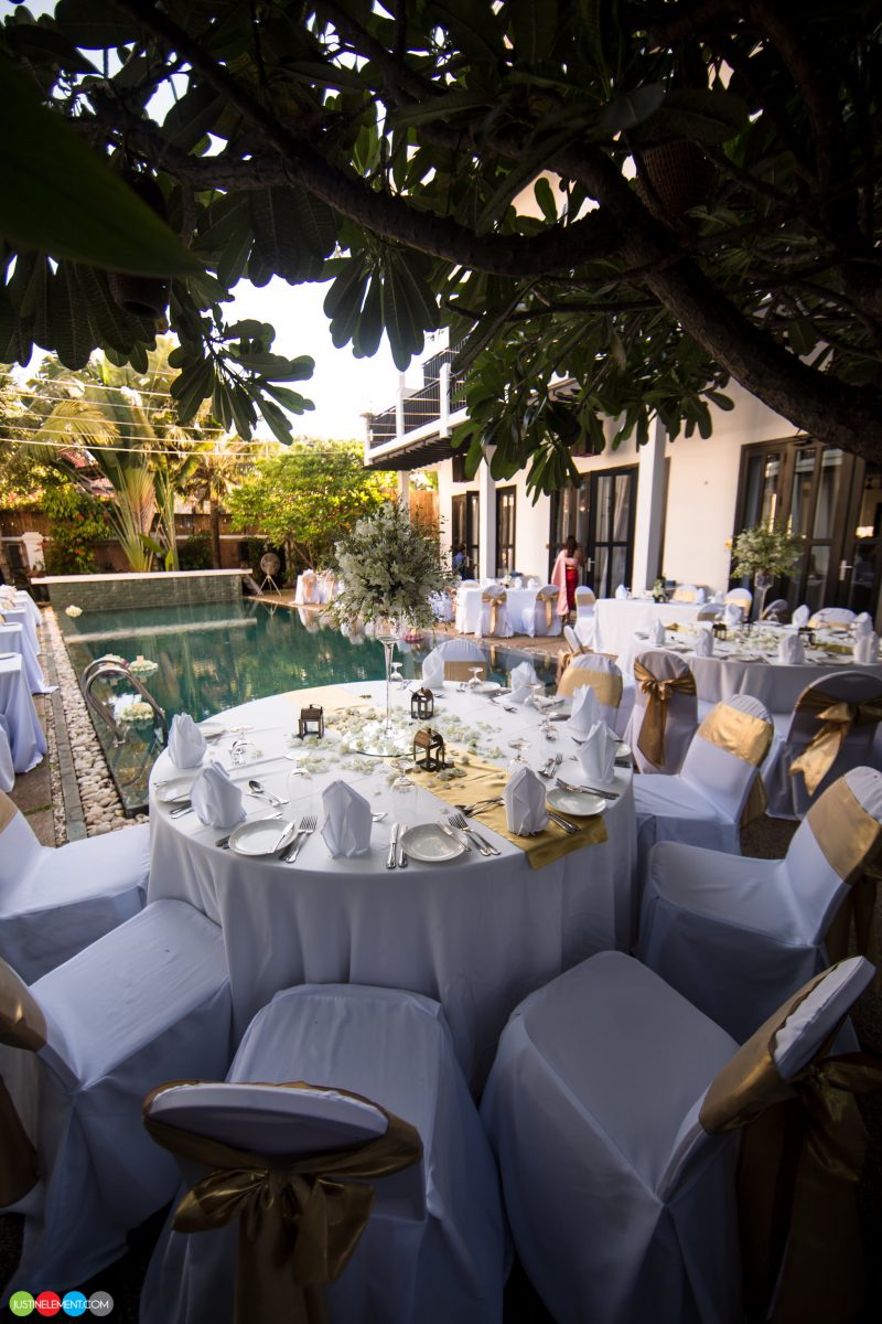 All of our guests had a lushing Buffet dinner around the Pool, where they could enjoy the Apsara Dances show, a Fire Lightening performance and at the end, our Dj for the occasion launched the First Dance and the party until late night!